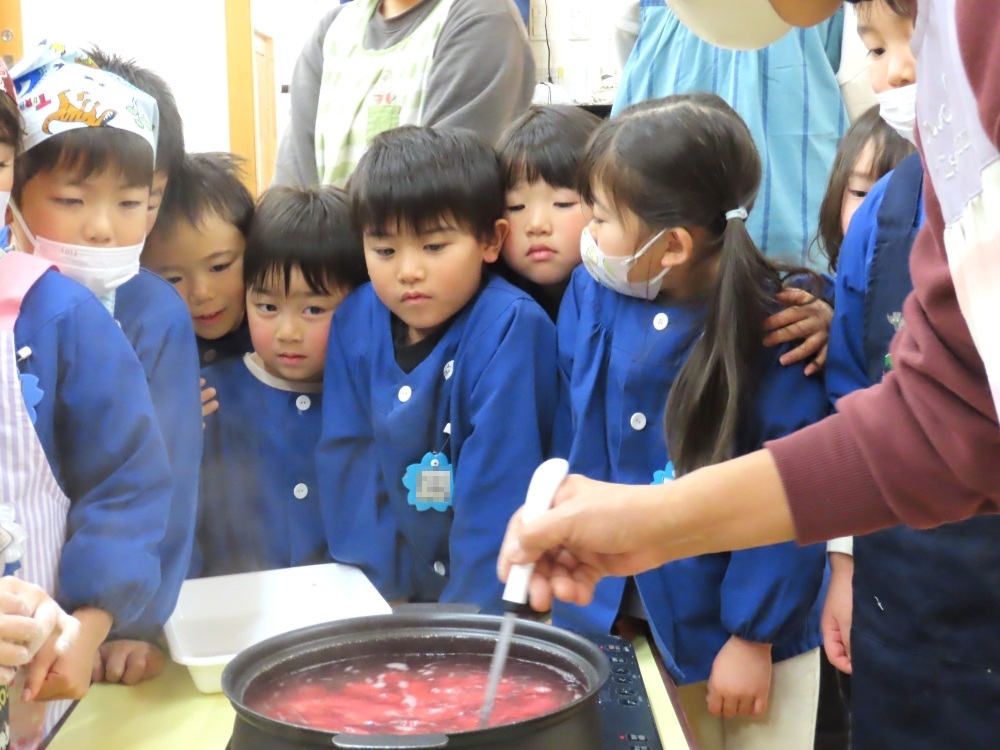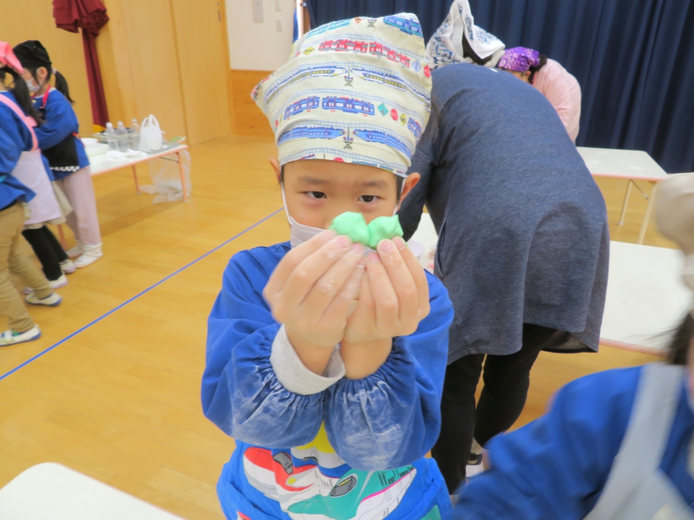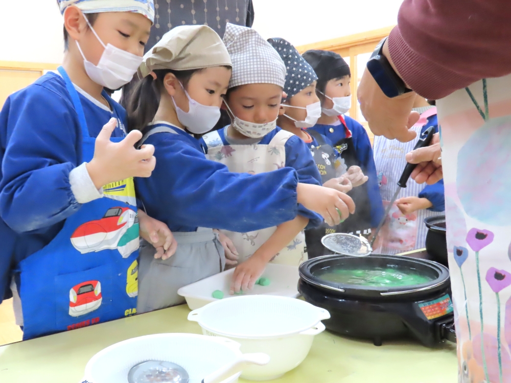 1月15日、5歳児そら組さんが『みずき団子作り』をしました。